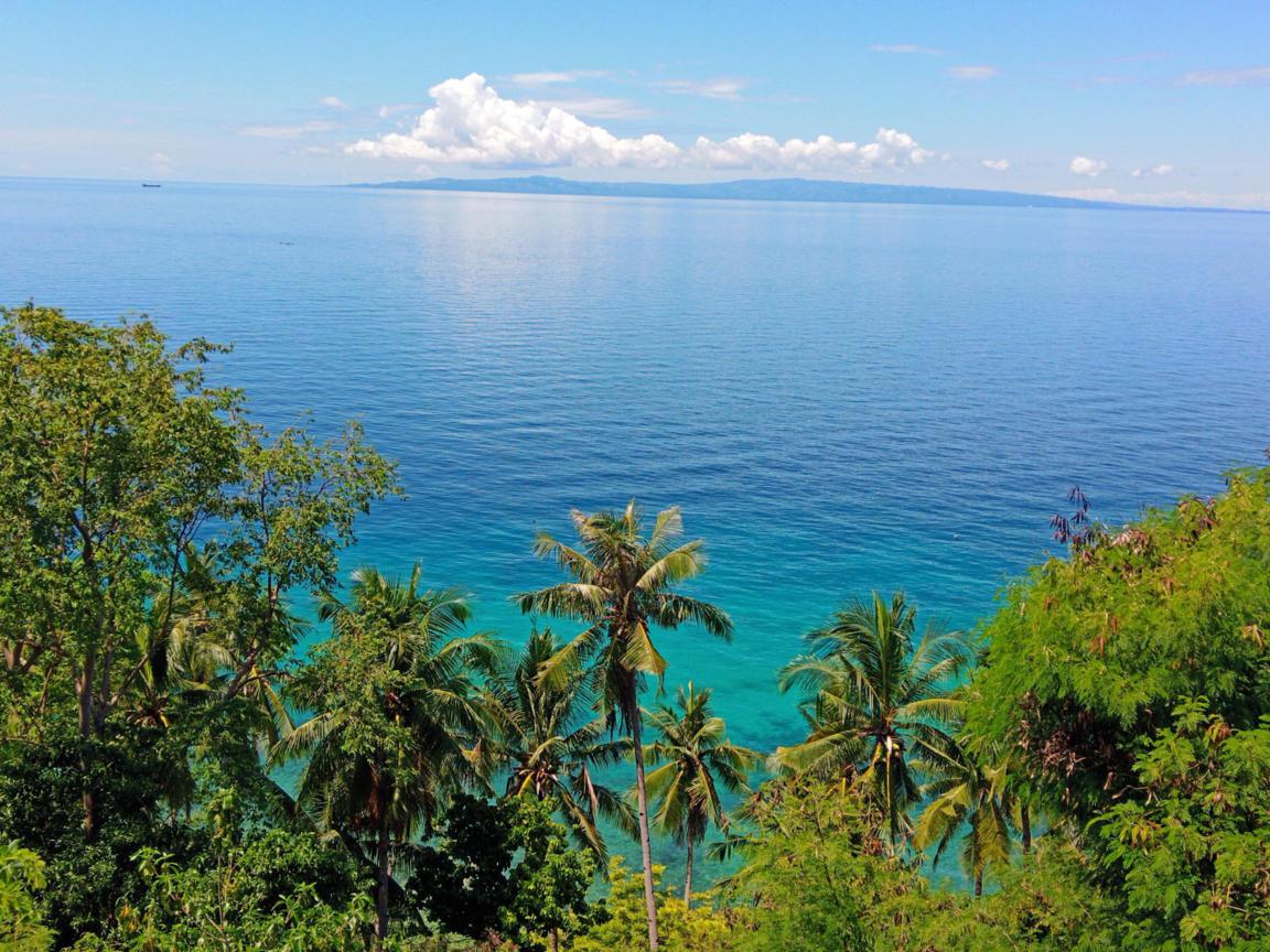 Relaxed on our roof terrace you look over the valley to the island of Negros.